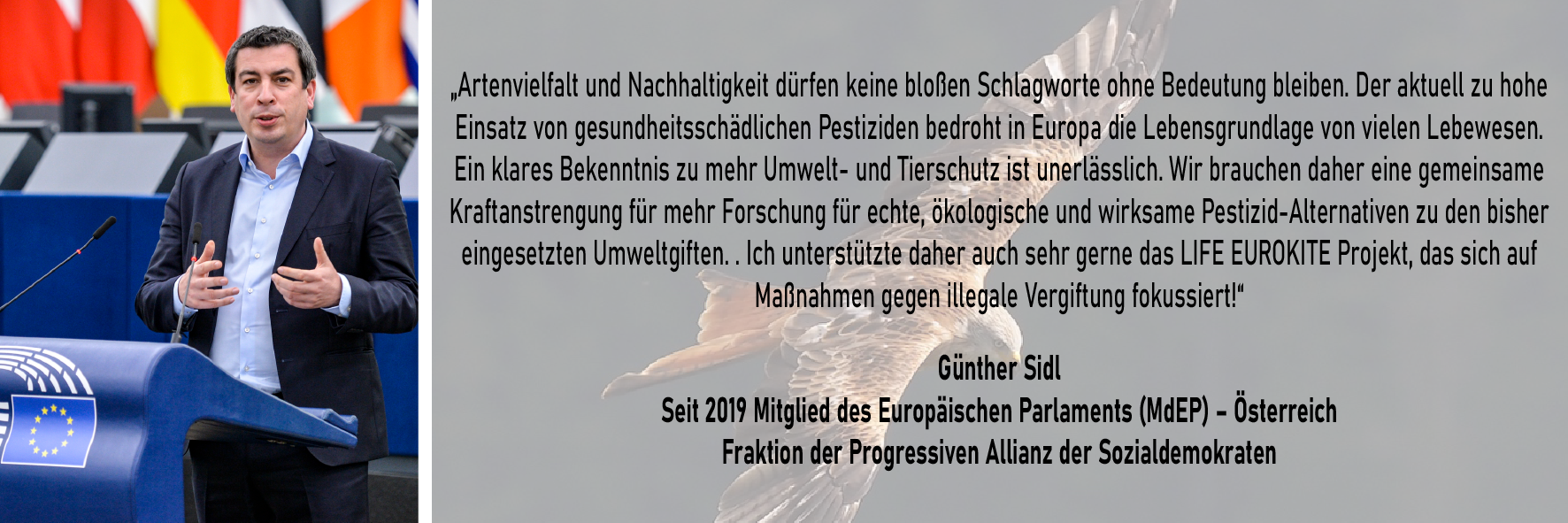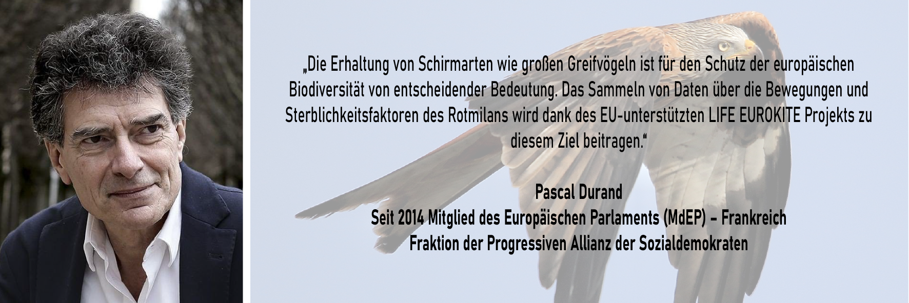 "Projekt-Unterstützer" (Project Supporters) sind Personen des öffentlichen Lebens und Vertreter unterschiedlicher Interessensgruppen, die das LIFE EUROKITE unterstützen. Projekt Unterstützer unterstützen das LIFE EUROKITE Projekt mit Ihrem Namen und helfen dabei unsere Ziele zu erreichen.